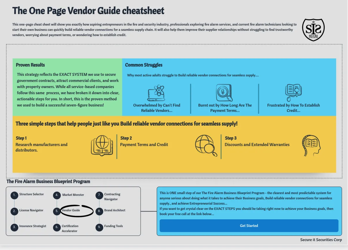 The Fire Alarm Business Blueprint is the ultimate step-by-step program designed to help aspiring entrepreneurs, skilled technicians, and security professionals successfully start and scale their own fire alarm and security company in just 90 days – even with limited capital or no prior business experience.